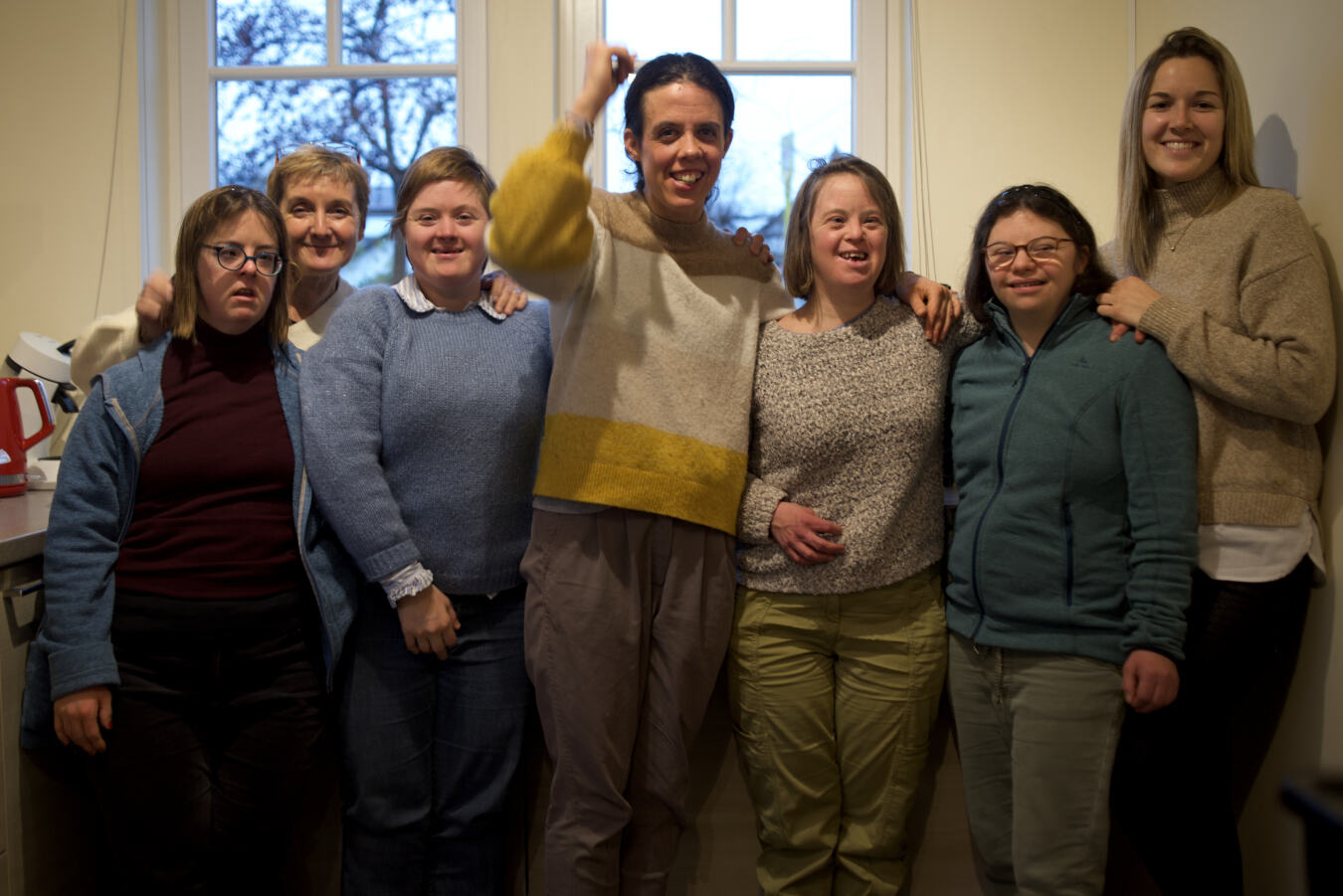 De gauche à droite, Laetitia, Nathalie, Mizaële, Marie, Mélanie, Astrid et Noémie. Le projet est encadré par Nathalie et Noémie, éducatrices, présentes après la journée passée en centre de jour. Elles aident à la gestion quotidienne du lieu: «Je me vois comme une sorte de majordome, de chef d’orchestre… Ce qui nous importe, c’est ce que les filles veulent, elles», explique Nathalie.